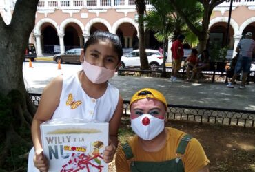 La compañía Clown a la calle entregó libros a niños yucatecos, derivado de la convocatoria ¡A leer se ha dicho...!