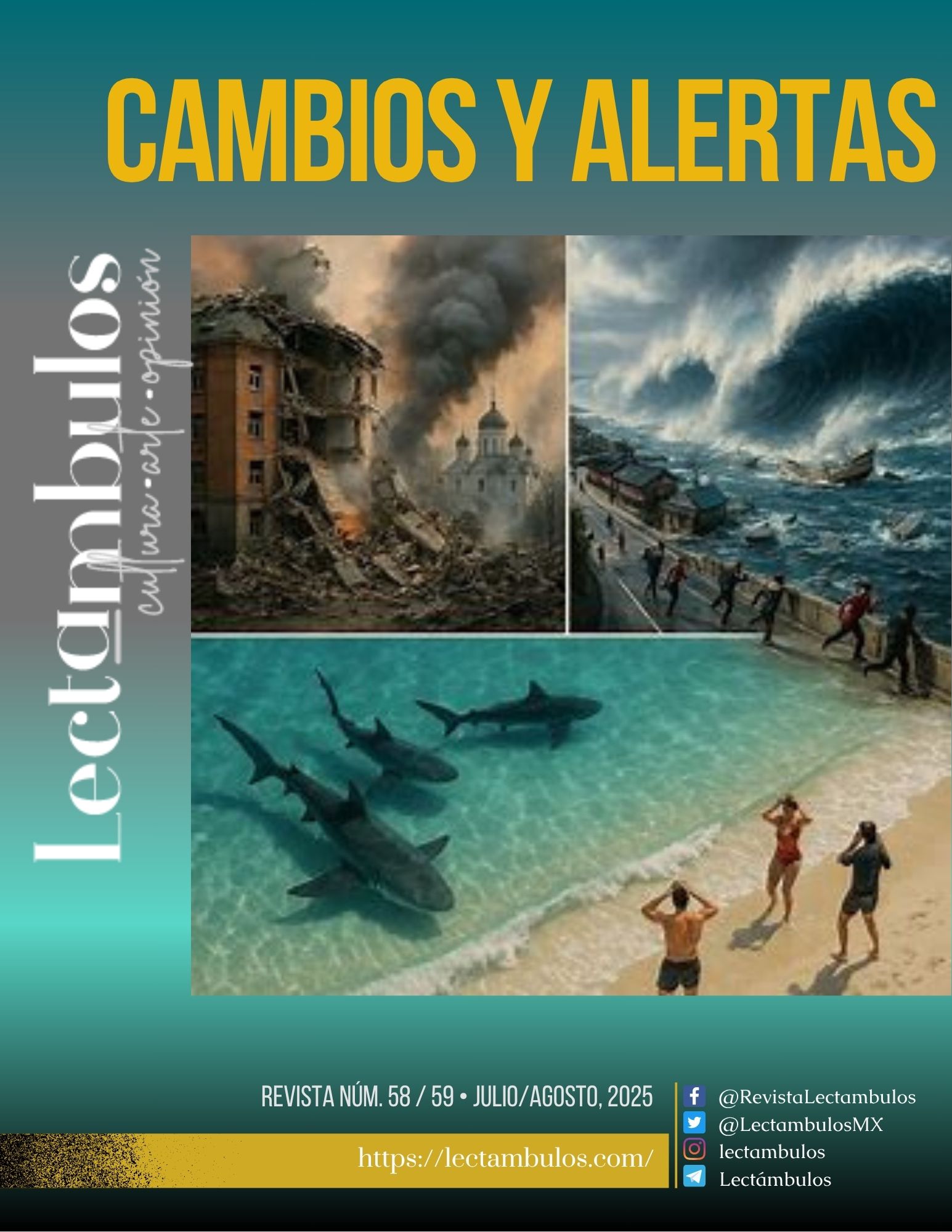 Este número doble (Julio/Agosto, 2025) de Lectámbulos: Cambios y Alertas, no es una llamada al miedo, sino a la responsabilidad. Vivimos una etapa de cambios inevitables, pero también de oportunidades. Aún es posible frenar lo peor del calentamiento global. Lo que hace falta es voluntad. La Tierra ya nos está enviando señales. Depende de nosotros escucharlas y actuar antes de que sea demasiado tarde.