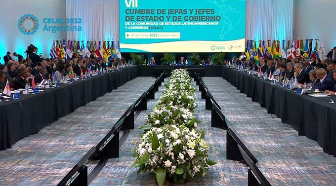 En Buenos Aires, Argentina, tuvo lugar la VII Cumbre de Jefas y Jefes de Estado y de Gobierno de la Comunidad de Estados Latinoamericanos y Caribeños (CELAC). Esta reunión es de suma importancia, tanto por el contexto en el que la guerra entre Rusia y Ucrania genera un reacomodo geopolítico de las grandes potencias, cuyos intereses se entrecruzan con nuestras naciones, como por los acontecimientos recientes en Nuestra América, especialmente, por la represión ejercida por el gobierno de facto impuesto tras el Golpe de Estado en Perú, desde el pasado 7 de diciembre, y que a la fecha suma ya más de 60 muertes. Asimismo, por el asalto a tres sedes del poder en Brasil realizado por grupos neofascistas, mostrando la urgencia de afrontar el desafío que representa el resurgimiento de las formas radicales de la derecha global. Además, durante este encuentro, se formalizó el regreso de Brasil a la CELAC, cerrando el capítulo negro que significó la actitud desestabilizadora para la región asumida por Jair Bolsonaro bajo las órdenes del imperialismo estadunidense.