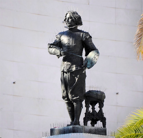 La mente humana cosifica y así conocemos el mundo. La imagen es una misma, “Velázquez repleto de clavos” podría ser el título de la obra. Antonio Mairena parece estar cantando: “¡cómo venían los pajaritos!”, como en aquella toná que fue lo último que cantó en el estudio de grabación cuando se le encharcaron los pulmones y tuvieron que llevarlo al hospital, donde murió. La estatua situada en el Paseo Colón está cantando en dirección Cádiz, una ciudad que camina o revienta.