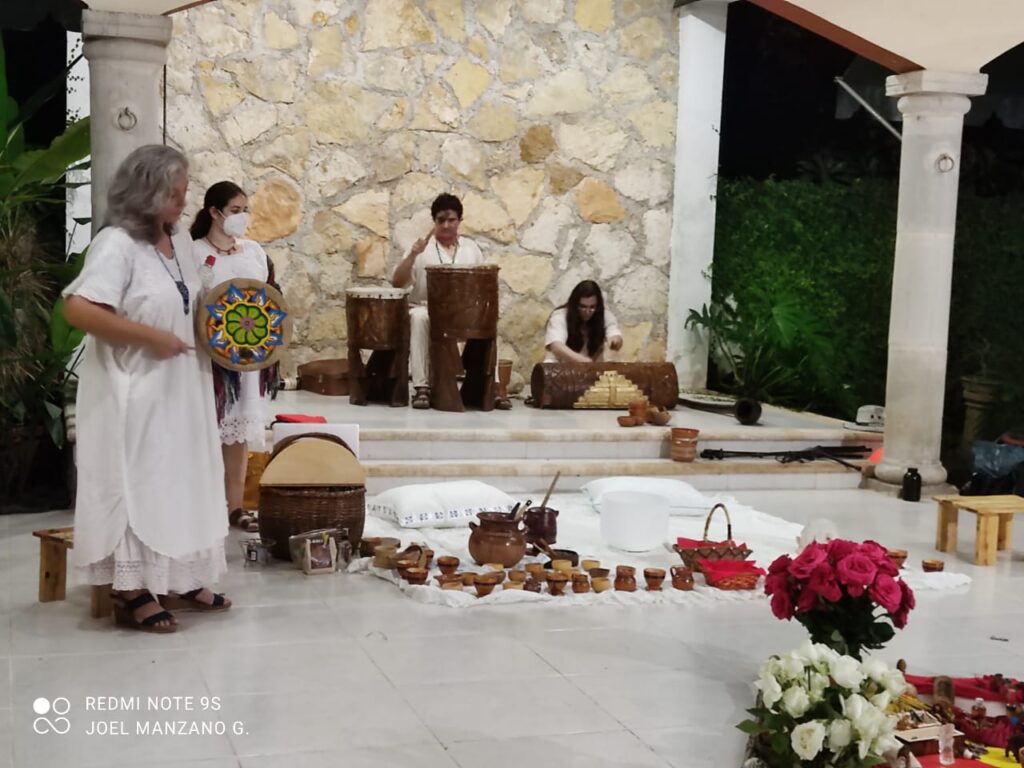 “Con esto buscamos no sólo la parte espiritual sino la parte educativa y cultural sembrando semillas de paz. Se lo entregamos a Hunab Ku y al universo, invitando a la abuelita del cacao, llamando al amor en la era de Acuario”, comentó María Guadalupe Aguilar Palomo, cuyo nombre maya es Lol Ik —viento florido—, nombre que le ha sido dado por el consejo de ancianos mayas. Ella también pertenece a grupo de Mujeres Danzantes de la Luna. Los nativos americanos la nombraron Yaa Sol, Nuevo Amanecer.