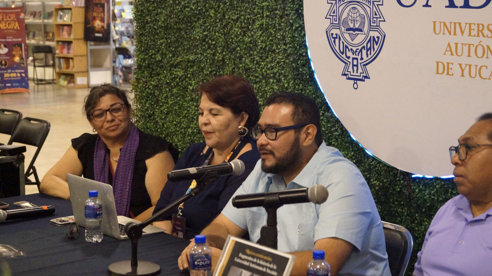 Acompañaron al autor el Dr. Jorge Castillo Canché y la doctora Celia Rosado Avilés, secretaria general de la UADY; así como la maestra Verónica García Rodríguez, directora de Lectámbulos, editorial que publicó este libro.