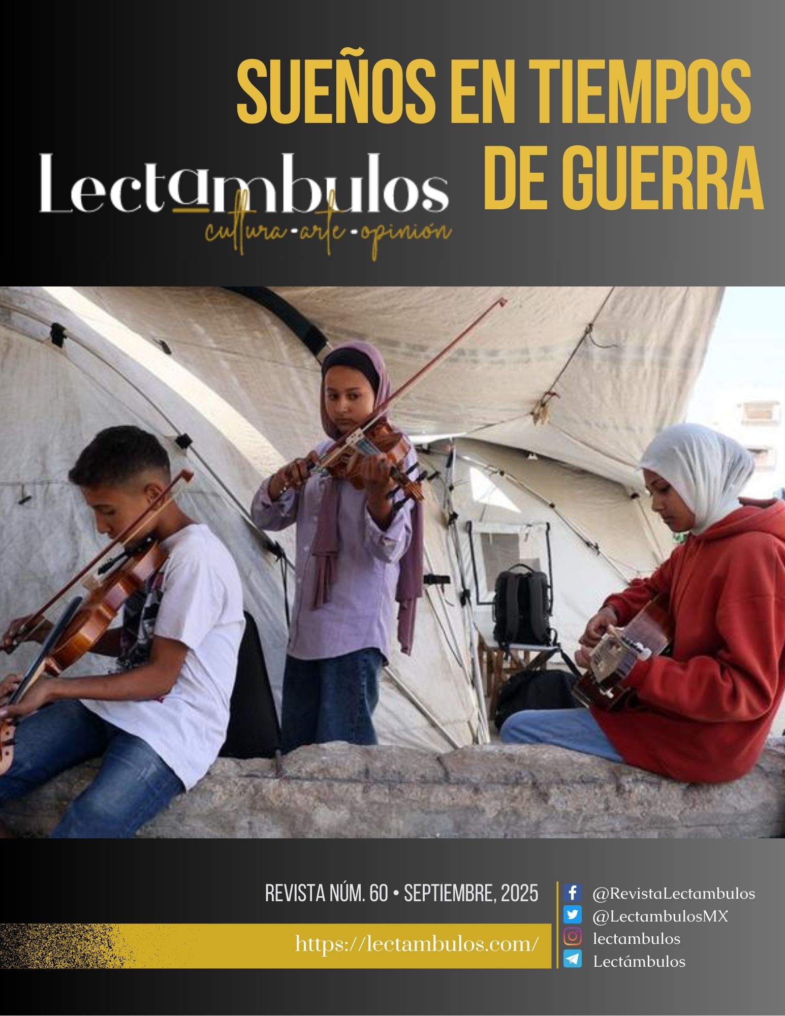Por eso, esta edición número 60 de Lectámbulos, con la que celebramos nuestro quinto aniversario, la dedicamos a esos maestros, a esos músicos y a esos niños, con el tema Sueños en tiempos de guerra, porque creemos que los sueños y el arte pueden mantenernos vivos.